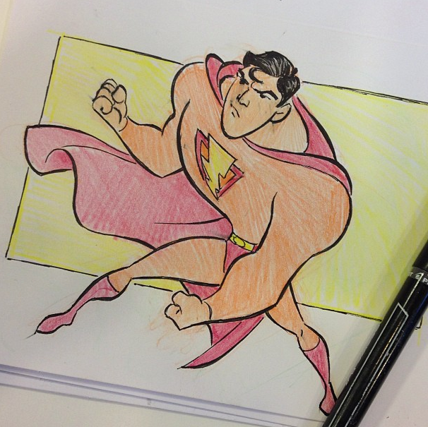 Most of my client work is done digitally on my Cintiq, but when it comes to personal sketches every once in a while I go back to my roots and draw on good-old paper. Often I doodle on blank greeting cards. If one of them turns out really well I may mail it out as a special promotional piece, either to stay in touch with a past client or to try and build a stronger connection with a client I hope to someday do work for. You can see a few samples of those sketch cards in this blog post.