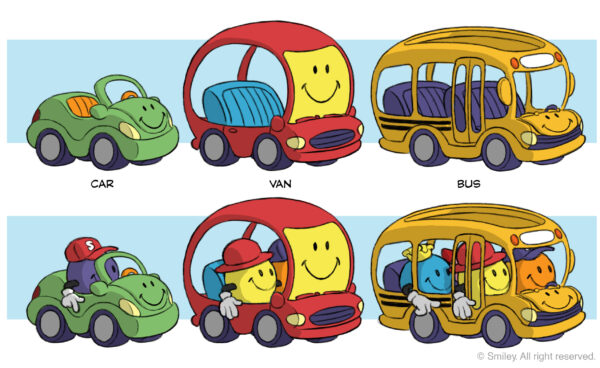 The Smiley Company has a line of toy figurines based on the classic smiley face we’ve all seen a thousand times. They hired me to help design some vehicles and playlets for an upcoming toy line. I hope to share the playlet art soon but in the mean time here’s how the vehicle concepts turned out.