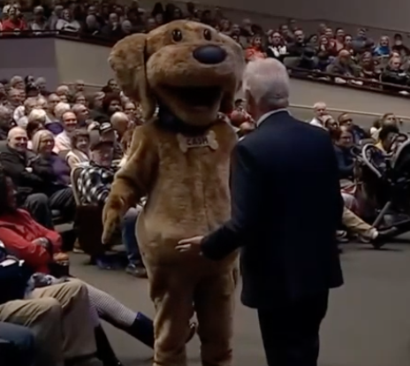 Spire has really taken to him. They named him Cash and I just found out they’ve turned him into a life-sized costumed mascot: