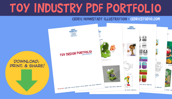 If you need a concept artist or illustrator for a toy related project, or you know someone who might, please download this free PDF portfolio. Email it, share it, or print it out to bring to a meeting. I’d love to hear about your project and talk about how I could meet your needs.