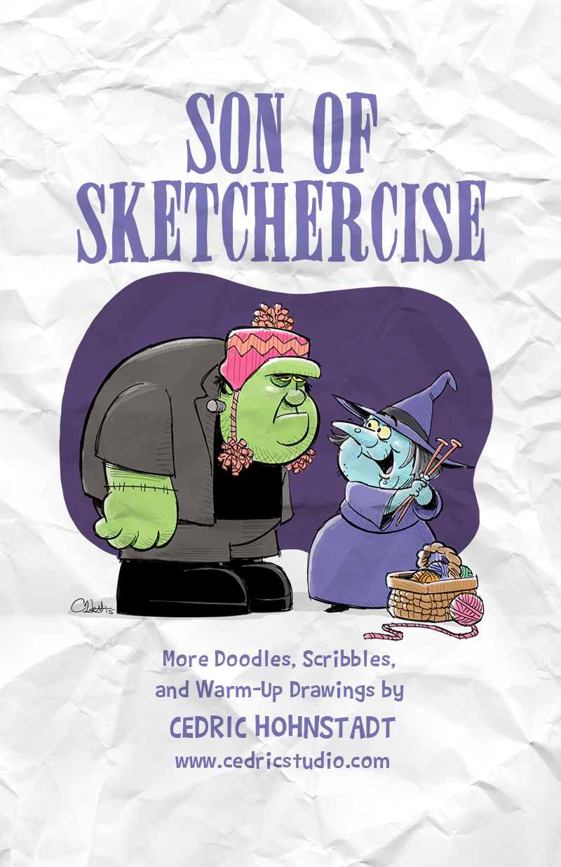 Announcing my second collection of personal doodles and warm-up drawings: SON OF SKETCHERCISE! I’ve culled through my sketchbooks and pulled together the best drawings from the past few years. The 46 page PDF contains almost 100 pieces of art, mostly from my personal work plus a few from client projects. Most of the drawings aren’t the funny kind from my Sketchbook Silliness webcomic (for those you need to get my book MOSTLY NONSENSE), though I did throw in a few rejected gag ideas. overall what it lacks in humor it makes up for in elbow grease.
