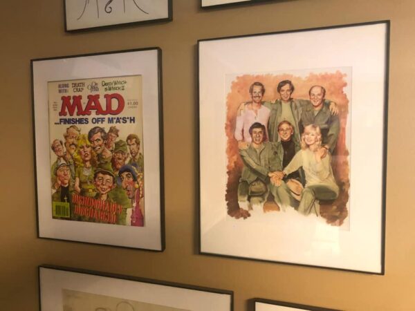 What got me excited is that the auction site has a link to a hi-res scan of the painting. In my art studio I have a wall covered with artwork by other artists. Some of it is original art and some are just prints but every piece either inspires me or has sentimental value. I’ve downloaded the hi-res M*A*S*H scan, printed it out (8×10 size), and it now hangs on my studio wall next to a M*A*S*H MAD Magazine cover by the legendary Mort Drucker.