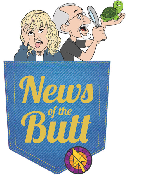 To keep the podcast from getting too serious Phil has a recurring segment called News of the Butt. News stories about our rear ends are surprisingly common and Phil takes a childish glee in sharing them, much to the eye-rolling disdain of co-host Christian Taylor. Vischer also asked me to illustrate a logo for the segment which they use on the video version of the podcast (available on their YouTube channel).