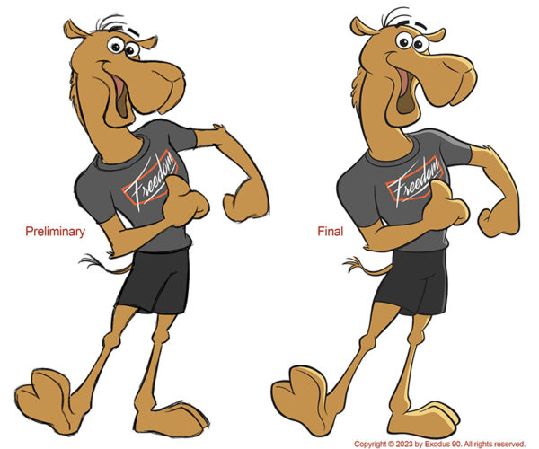 Exodus 90 is a Catholic ministry for men. Their goal is to challenge men of all ages and backgrounds with a 90-day period of fasting and discipline, focusing on three areas: prayer, asceticism (self-denial), and fraternity (brotherhood). They asked me to help them design an appealing mascot that they could use in some of their materials.
