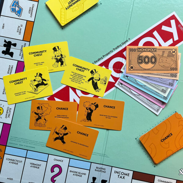 Here’s a photo I took showing the new game cards and money featuring my illustrations: