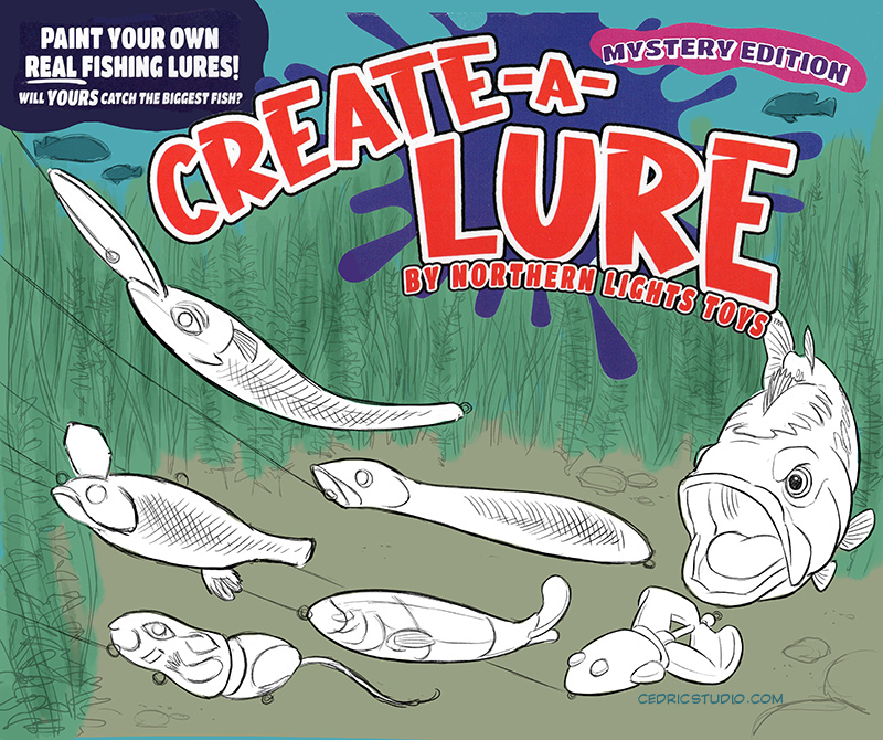 Northern Lights Toys wanted to update the artwork on some of their Create-A-Lure products. They had one illustration they really liked and wanted to update the rest to match. I was hired to create some new toy packaging artwork that matched their existing design.