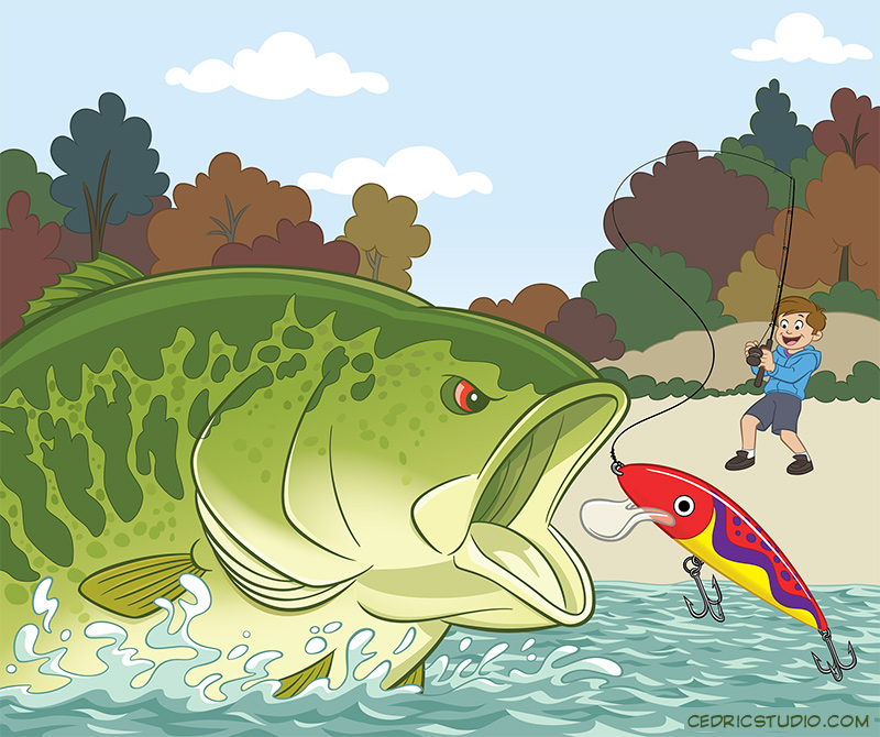 After that I did two more packaging illustrations, one featuring a “lunker” (which is a giant fish) and one featuring a Northern and Walleye.