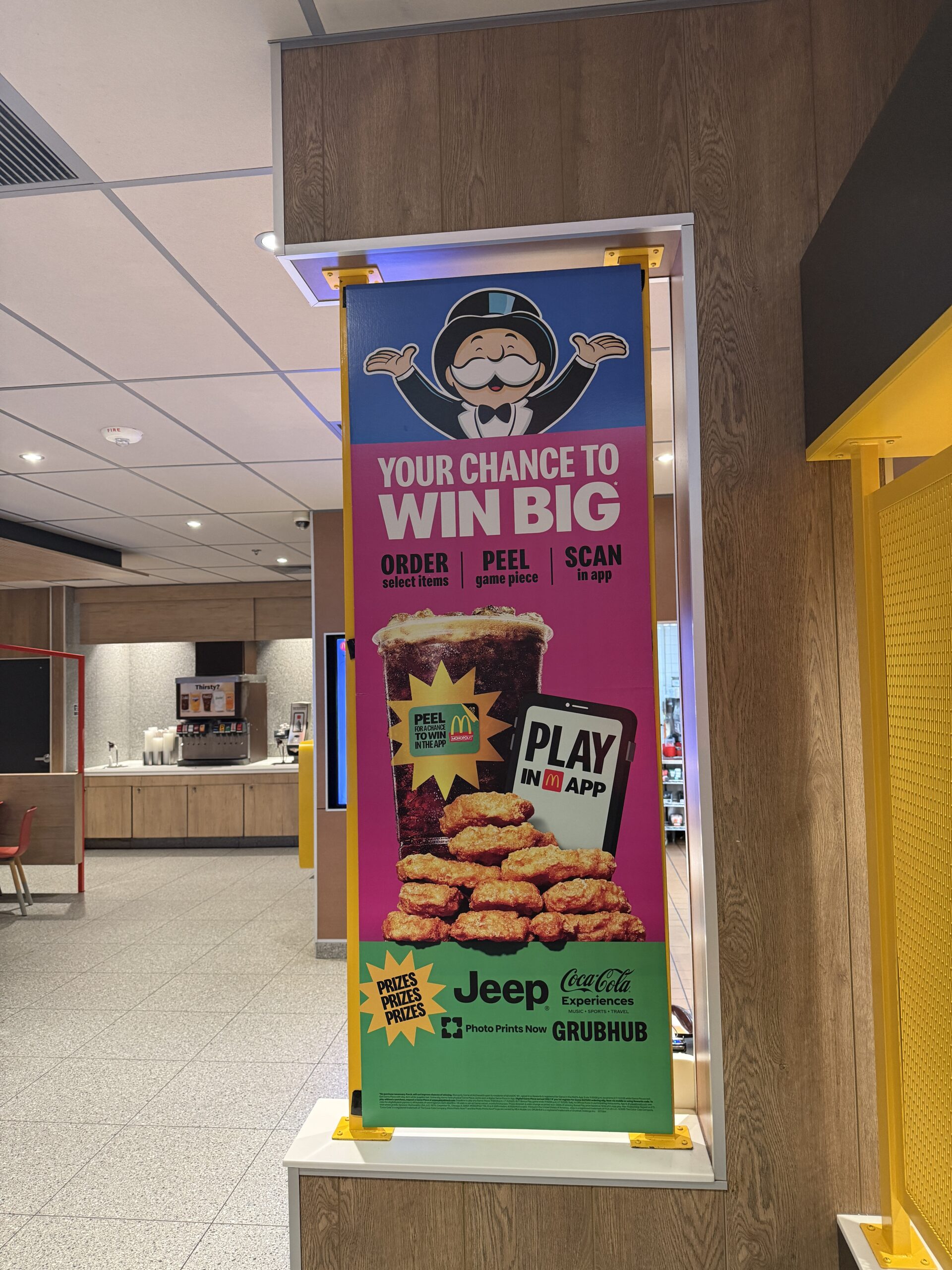 The game is a bit different this time, with most of it happening in the McDonald’s app. You can still peel tokens off of the packaging of certain food items, but you will then have to scan the game piece with the app in order to find out what you’ve won. And if you want to win the grand prize of $1 million you have to do it through the app.