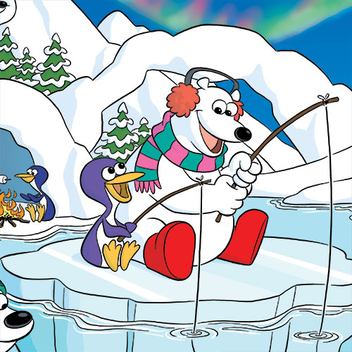 Kid Stuff Marketing creates kids' meal menus and toys for restaurants. They hired me to create a multi-use illustration for their "Polar Pranks" brand....