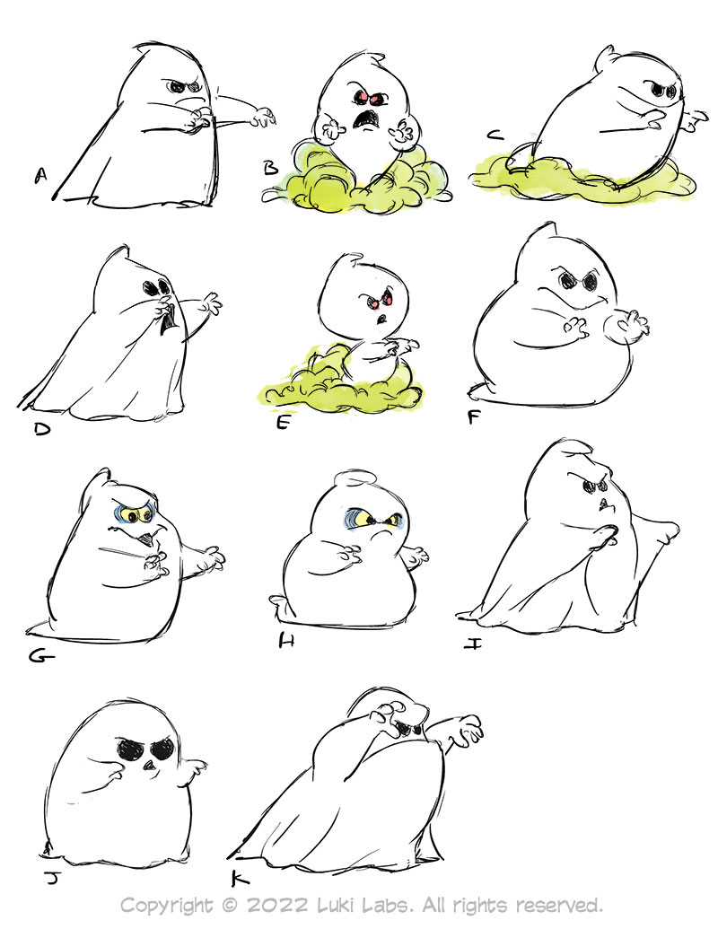 Another fun project I can finally share: I was hired by Strottman, Int'l to help on a board game for Luki Labs. Go Go Ghost is about escaping a ghost in a haunted mansion. I helped design the toy ghost figurine and did some concepts for card illustrations that ultimately were not used. (The illustrations on the board and box...