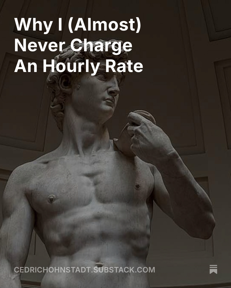 14 Jul New Substack Post: Why I (Almost) Never Charge An Hourly Rate
