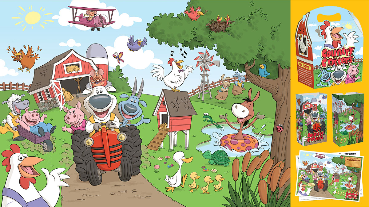 My artwork has appeared on everything from packaging to toys, retail signage, restaurant kids’ meals, animated series, educational curriculum, and children’s books.