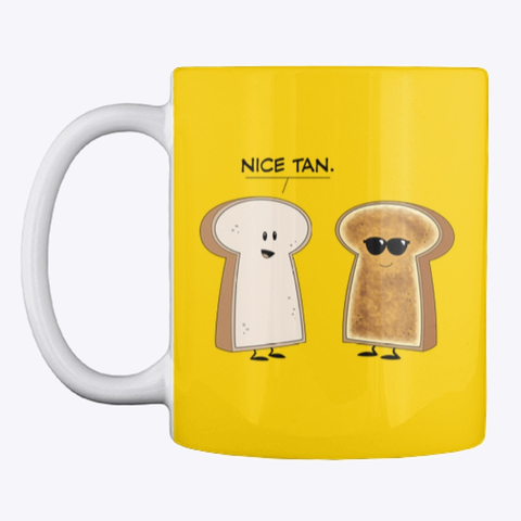 Show off your sense of humor with this funny cartoon mug. Whether you are on summer vacation or just want to soak up some sun, do it with a smile. Available in multiple colors.